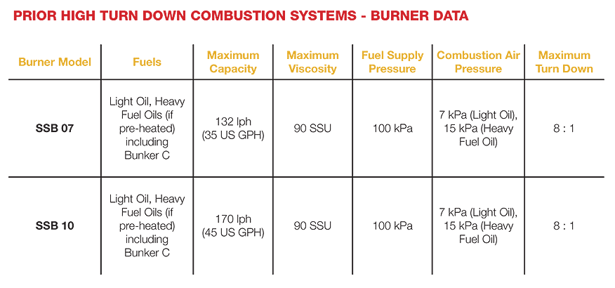 Developed by our engineers to fulfil precise combustion requirements, PRIOR High Turn-Down Combustion Systems are suitable for various applications, both pressurised and non-pressurised. Such aspects as accurate combustion ratio control throughout the entire firing range, very wide turn-down ratios, increased burner capacities and improved flame control are all prominent features of the High Turn-Down Burner range.